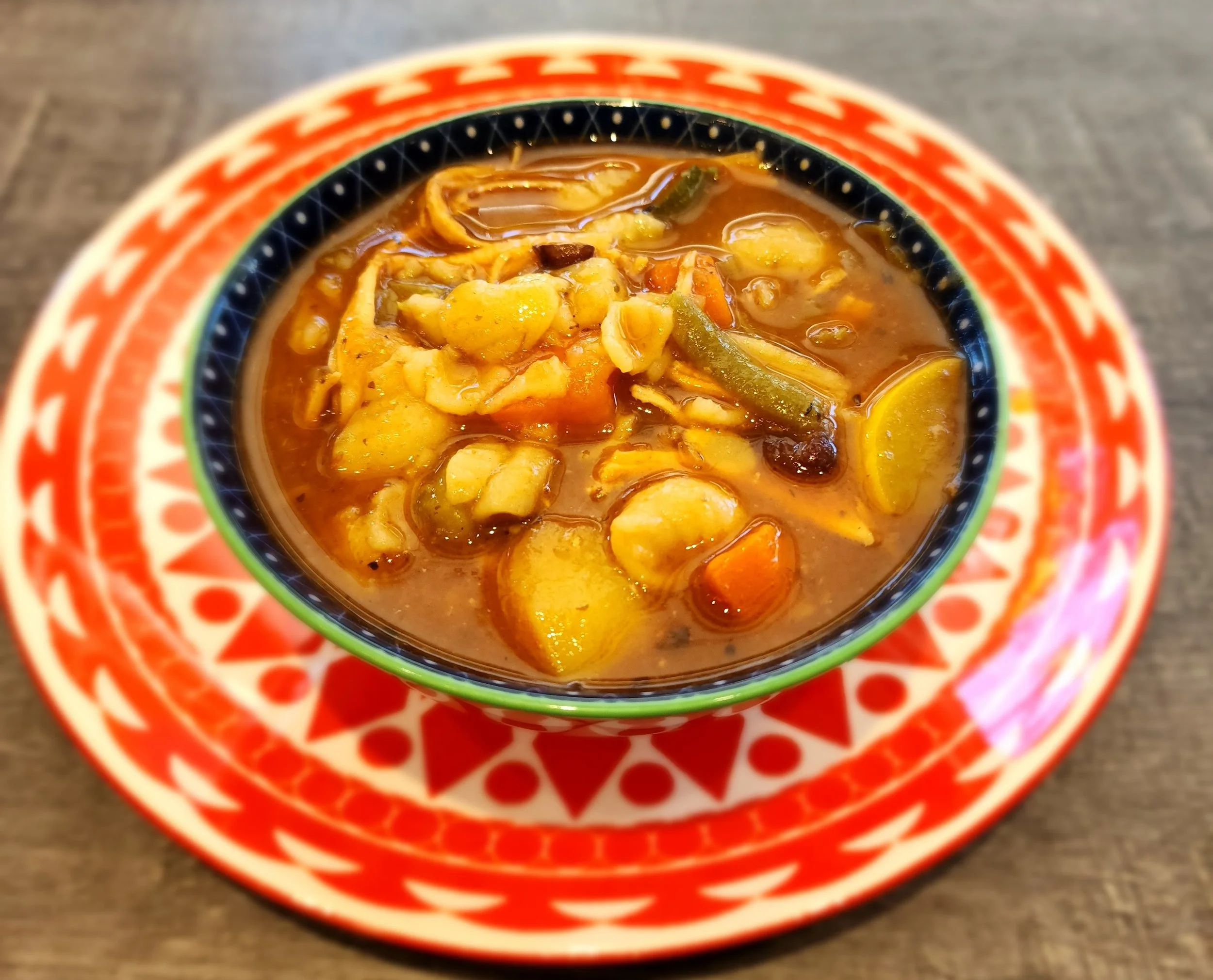 CHICKEN MINESTRONE SOUP. (Served with a little slice of bread).